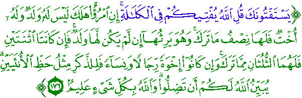 هۆى دابهزینى ئایهتى ١٧٦ سوڕهتى (نساء) : { يَسْتَفْتُونَكَ قُلِ اللّهُ يُفْتِيكُمْ فِي الْكَلاَلَةِ }