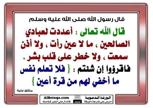 ئامادهكردنی : جلال الدین نجم الدین / قال رسول الله صلی الله عیله وسلم : ( إنَ الله عزّ وجلَّ قال : أعْدَدْتُ لِعِبادي الصّالِحینَ ما لا عَیْنٌ رَأَتْ ، ۆلا أُذُنٌ سَمِعَتْ ، ۆلا خَطَرَ عَڵی قَلْبِ بَشَرٍ ). ئیمامی (بوخاری و موسلیم و ئهحمهد) گێڕاویانهتهوه