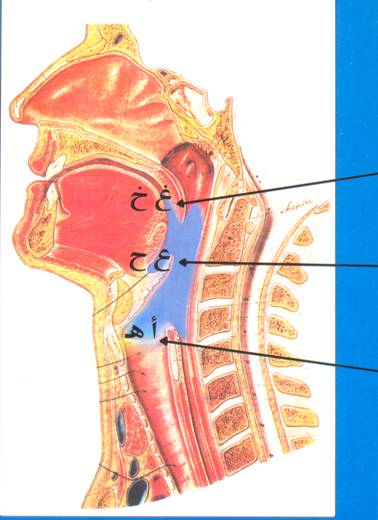 ناوهندی گهروو پیتی (ع، ح)ی لێ دهردهچآ بهلآم (ع) له خوارتره، نزیکترینی گهروو که دهکهوێته لای دهم پیتی (غ، خ) ی لێ دهردهچآ بهلآم (غ) له خوارتره.