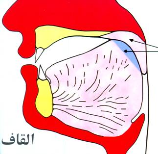 ١-ئهوپهڕی زمان (أقصى اللسان) واته کۆتایی زمان لهگهل مهلآشوو یان ئاسمانهی سهرووی دهم له بهرامبهری شوێنی دهرچوونی پیتی (ق)ه