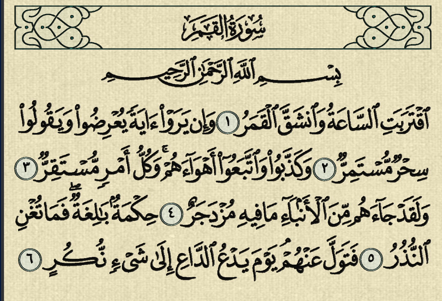 نوسینى : بورهان موحهمهد ئهمین / ئامادهکردنى : چێنهر / ئايهتهكه:(بخارى) و (مسلم) و (حاكم) له (إبن مسعود) هوه دهگێڕنهوه, دهڵێت : مانگم بينى له (مهككه) بوو بهدووكهرتهوه, پێش كۆچ كردنى پێغەمبەر (صلی الله علیه وسلم) بێ باوهڕان وتيان :