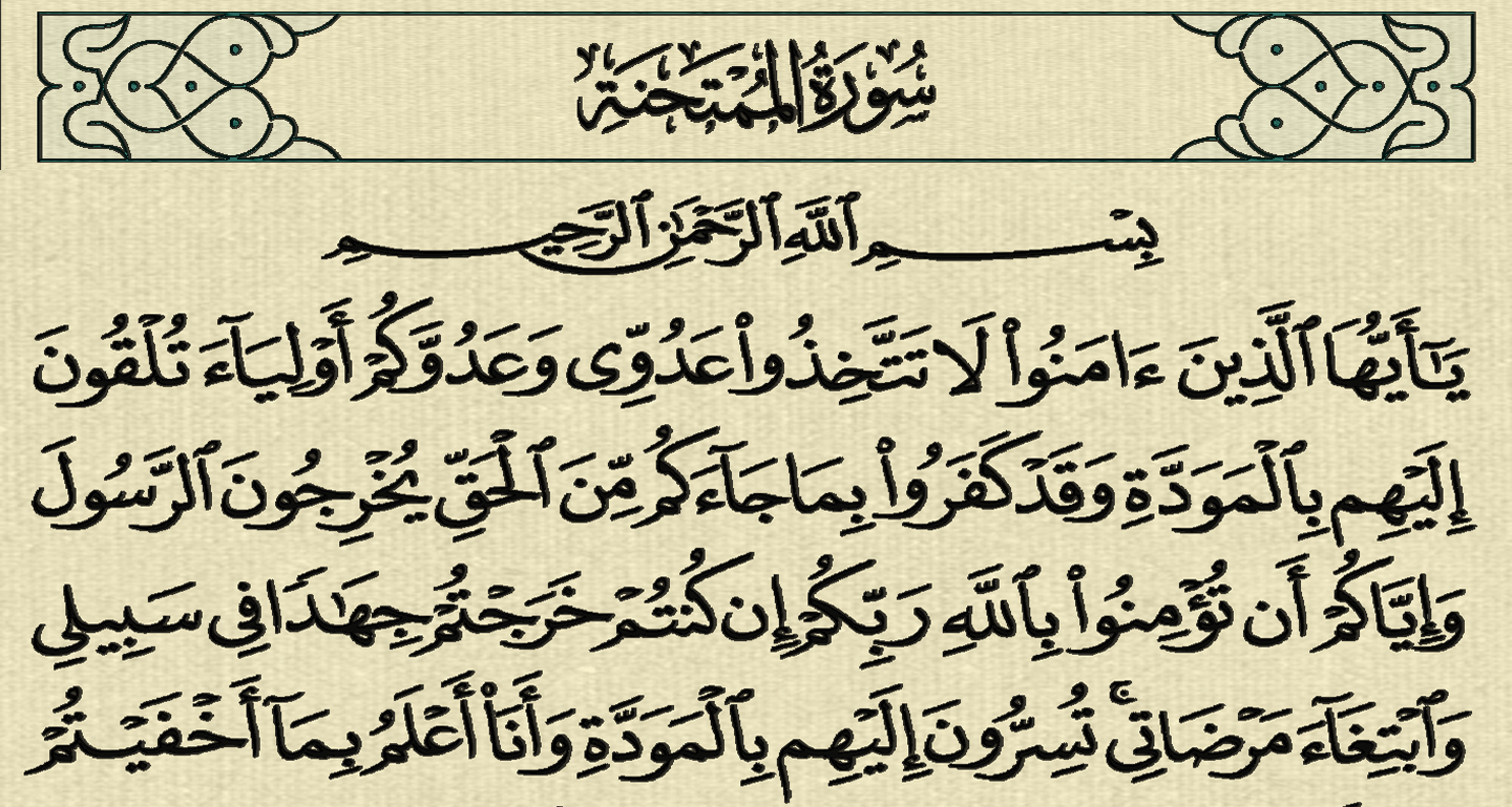 هۆی دابەزینی ئایەتی (١) ی سورەتی (الممتحنه) :{ يَا أَيُّهَا الَّذِينَ آمَنُوا لَا تَتَّخِذُوا عَدُوِّي وَعَدُوَّكُمْ أَوْلِيَاءَ تُلْقُونَ إِلَيْهِمْ بِالْمَوَدَّةِ وَقَدْ كَفَرُوا بِمَا جَاءَكُمْ مِنَ الْحَقِّ يُخْرِجُونَ الرَّسُولَ وَإِيَّاكُمْ ۙ أَن }
