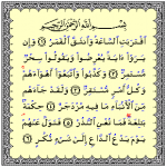 سورهتهکه باس له موعجیزهیهکى گهوره دهکات لهسهرهتاوه, که لهبهرچاوى کافرهکان ڕوویدا, کهچى بڕوایان پێ نهکردوه به جادوویان دانا (اقْتَرَبَتِ السَّاعَةُ وَانْشَقَّ الْقَمَرُ)القمر/١ (وَإِنْ يَرَوْا آَيَةً يُعْڕضُوا وَيَقُولُوا سِحْرٌ مُسْتَمِرٌّ)القمر/٢ قیامهت نزیک بووهتهوه مانگ دوو کهرت بوو, ههر نیشانهیهک ببینین بڕواناکهن و دهڵێن: ئهمه جادووهو ههر ههیه. (أَكُفَّارُكُمْ خَيْرٌ مِنْ أُولَئِكُمْ أَمْ لَكُمْ بَرَاءَةٌ فِي الزُّبُڕ (43) أَمْ ێقُولُونَ نَحْنُ جَمِیعٌ مُنْتَصِرٌ (44) سَیُهْزَمُ الْجَمْعُ وَیُوَلُّونَ الدُّبُرَ (45) بَلِ السَّاعَهُ مَوْعِدُهُمْ وَالسَّاعَهُ أَدْهَى وَأَمَرُّ)القمر/٤٣-٤٦ ئاخۆ خوانهناسانى ئێوه لهوهکانى تر چاترن, یان لهناو کتێبهکاندا پاکانهیان بۆ هاتووه؟