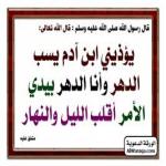 (عن أبي هريرة (رض) قال: قال رسول الله (صلى الله عليه وسلم): قال الله عزوجل: يؤذيني ابن آدم يسب الدهر وأنا الدهر بيدي الأمر أقلب الليل والنهار ). رواه البخاري ومسلم وأبوداود وفي رواية المسلم: يقول: يا خيبة الدهر ).