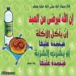 ((إنَّ الله لَيَرضى عَنِ العَبدِ أَنْ يأكُلَ الأكْلَةَ فَيَحمَدَهُ عَلَيها , أو يَشربَ الشَّربةَ فَيَحمدَهُ عَليها)) (أخرجه مسلم والترمذي وأحمد).